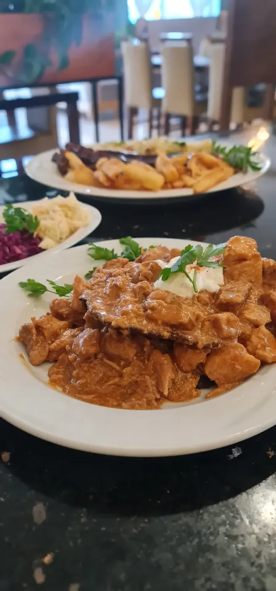 „Korzystaliśmy z restauracji w ramach obiadu urodzinowego. Jedzenie jest przepyszne, porcje bardzo solidne i estetycznie podane. Szczególnie mogę polecić „Danie Szefa”, które zamówiłem.”